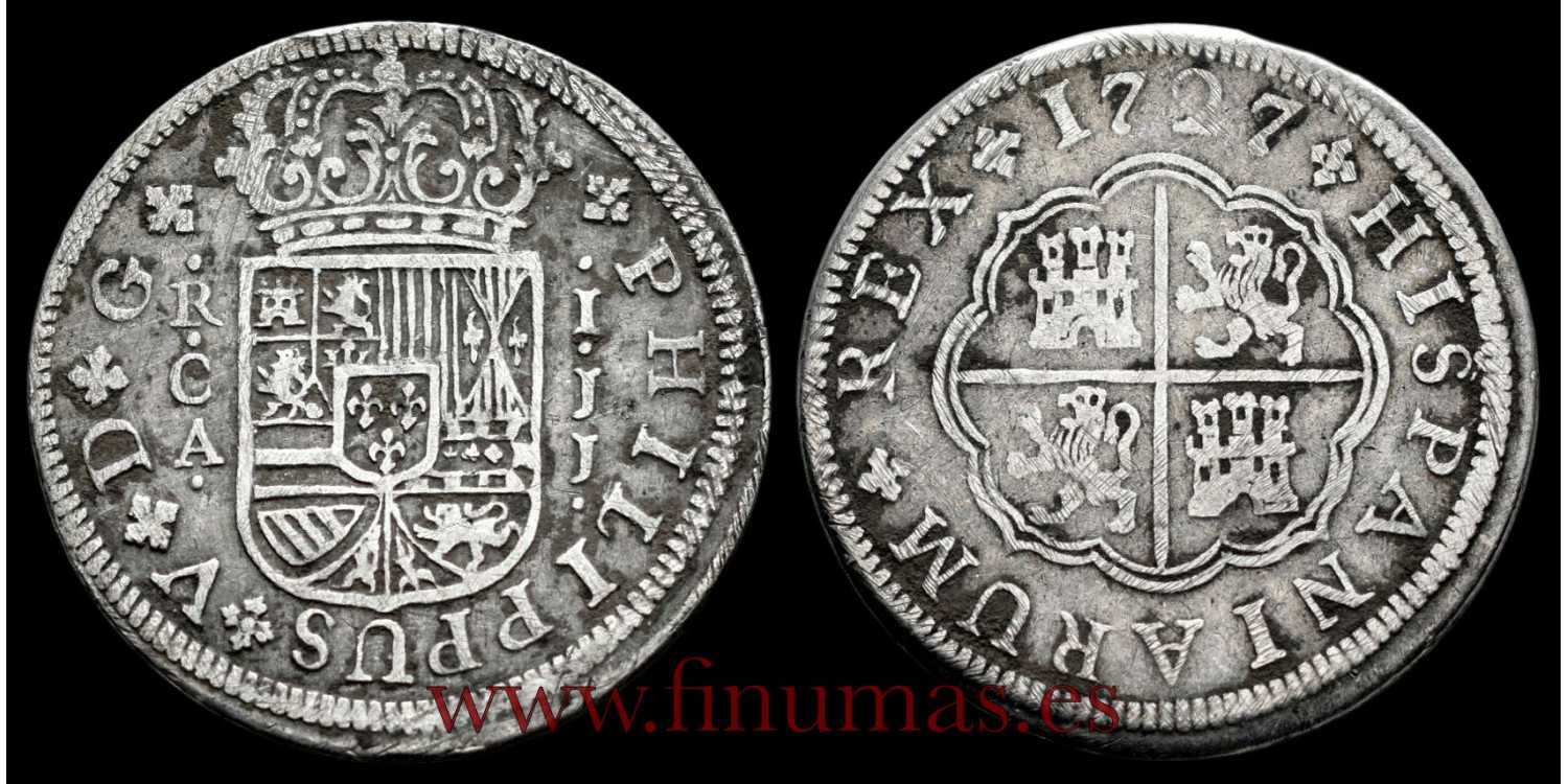 Philip V 1 real 1727 Cuenca J.J Ag. 2,40 g. MBC+/MBC. (Cal-353).