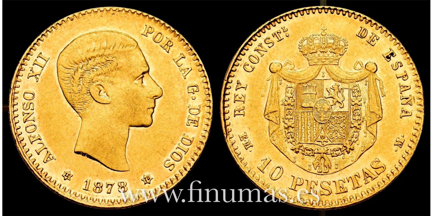 Alfonso XII 10 pesetas. 1878*18-78. Madrid. EMM. ORO (Au.) 3,21 g. Restos de Brillo original. MBC+/EBC- (Cal-65)