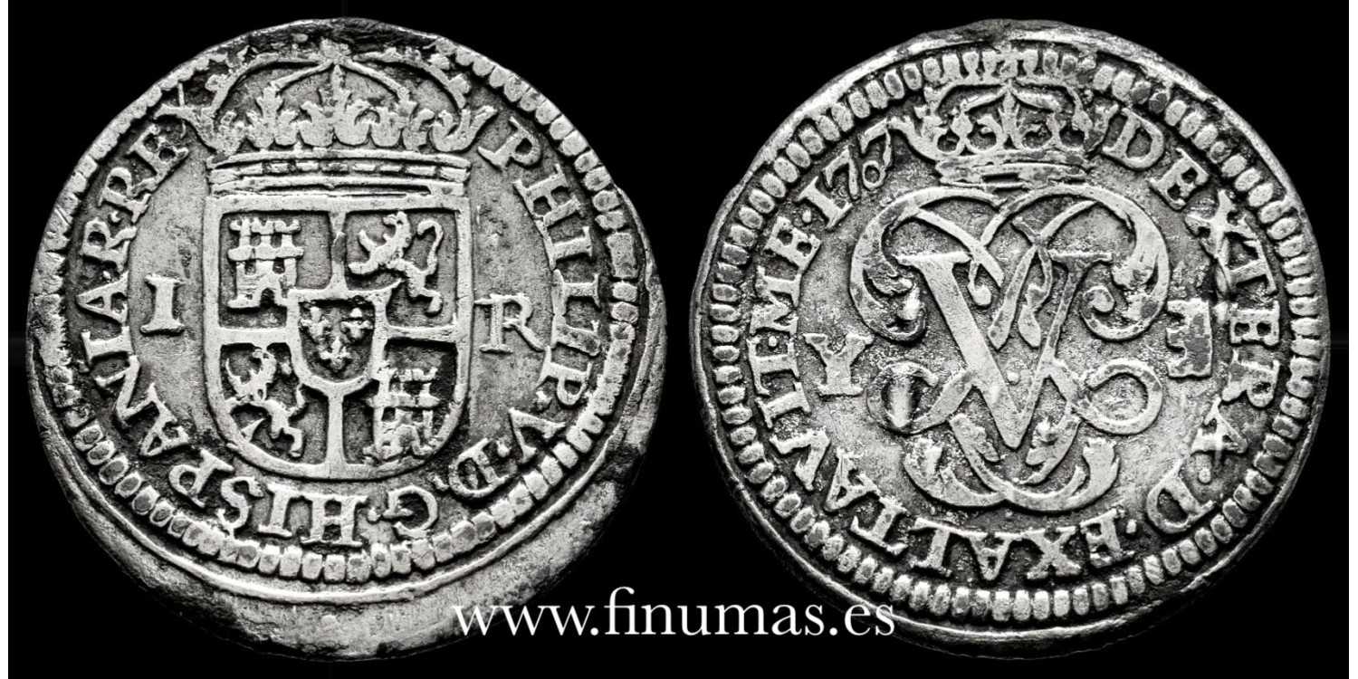 Felipe V 1 real 1707. Segovia Y. Silver (Ag.) 2'61 g. Variant of the small date 0. MBC+. (Cal-621)