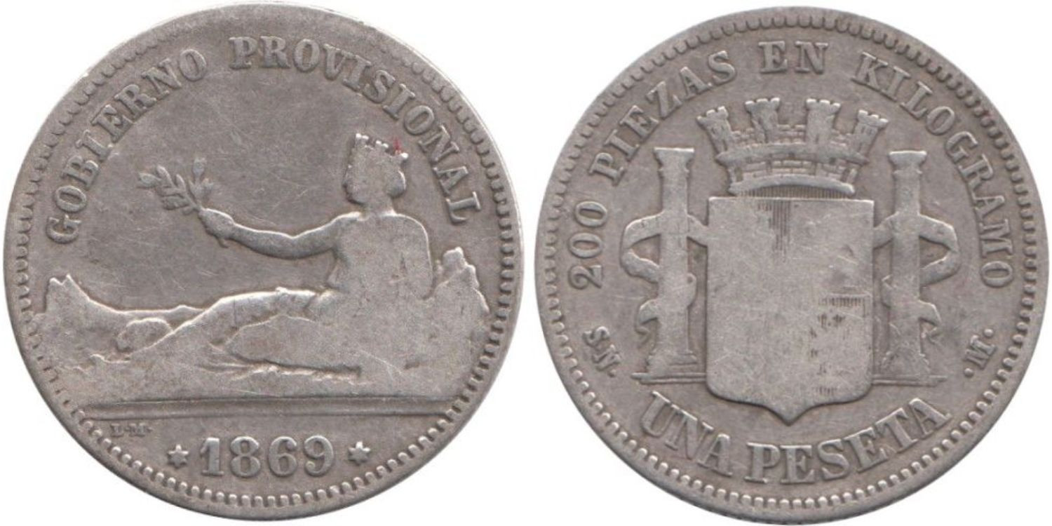 Cy16508C.-G.P Y I REPUBLICA - 1 Peseta 1869 GP SNM, silver BC