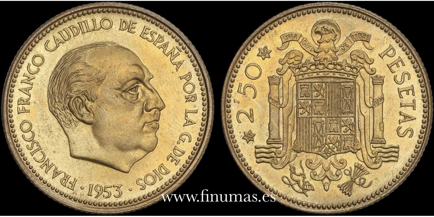 2'5 pesetas 1953 * 69. Some Marquita on cheek and 2nd star. All its brightness. Tone. Very nice