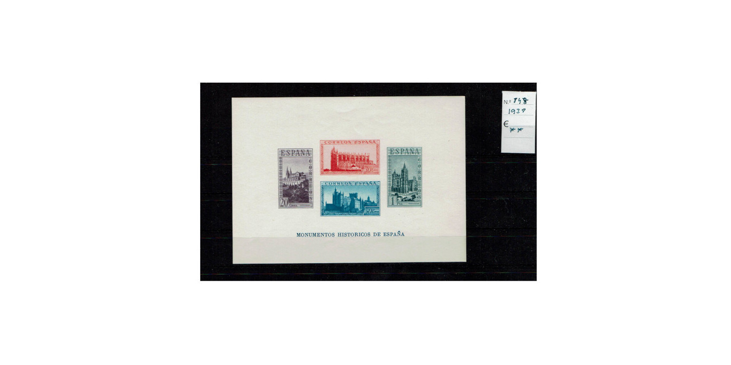 Edifil nº 847. 1938 Miniature sheet Historical Monuments. New with unmarked and undated