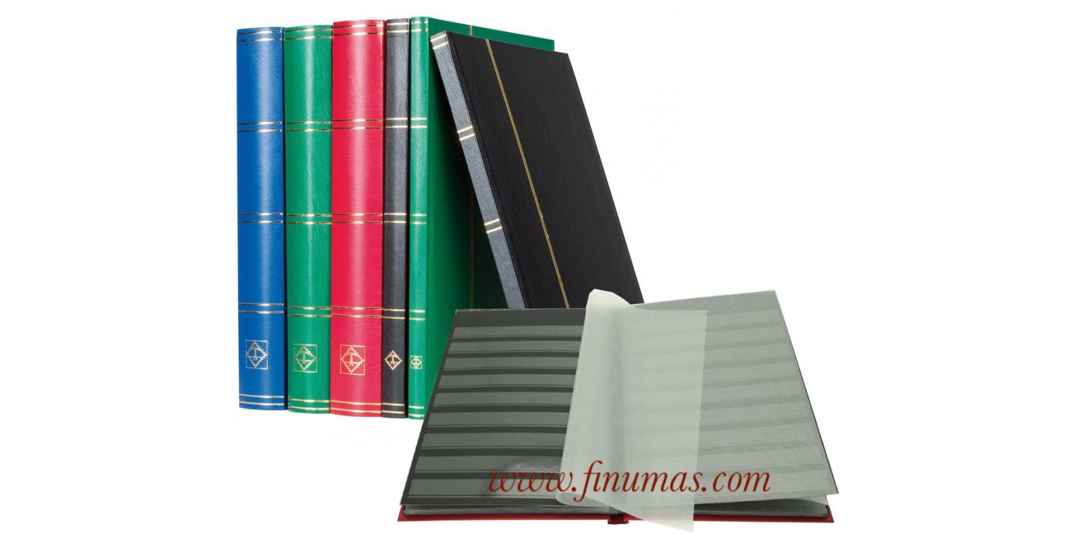 Stamp binder with 16 sheets/32 black pages and 10 bands by pagina.Lomo reinforced and double separation sheets.305mm x 230mm. Ideal to sort and preserve in perfect condition all kind of philatelic collections. Colours: blue, black, red and green