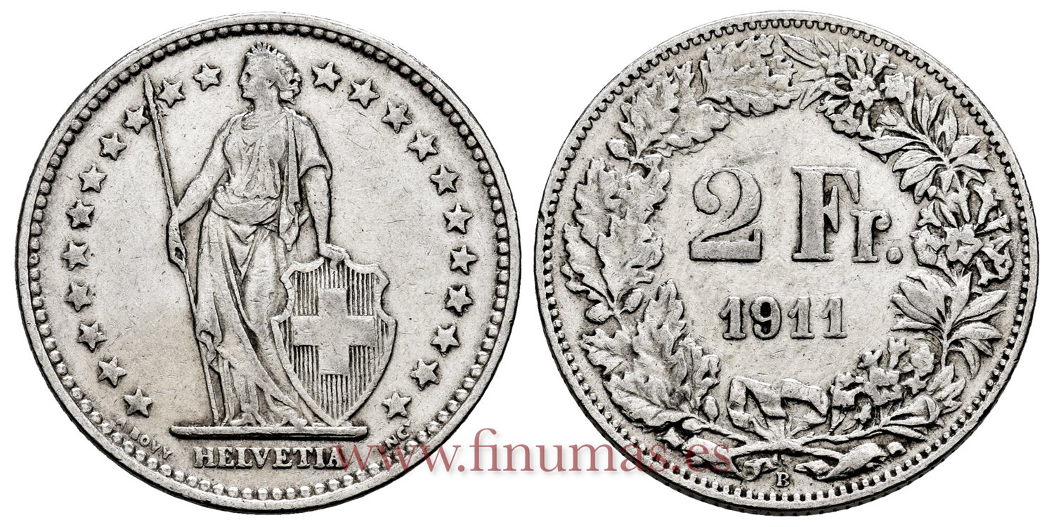 SUIZA - K-021 - 2 Francos 1911 - MBC+