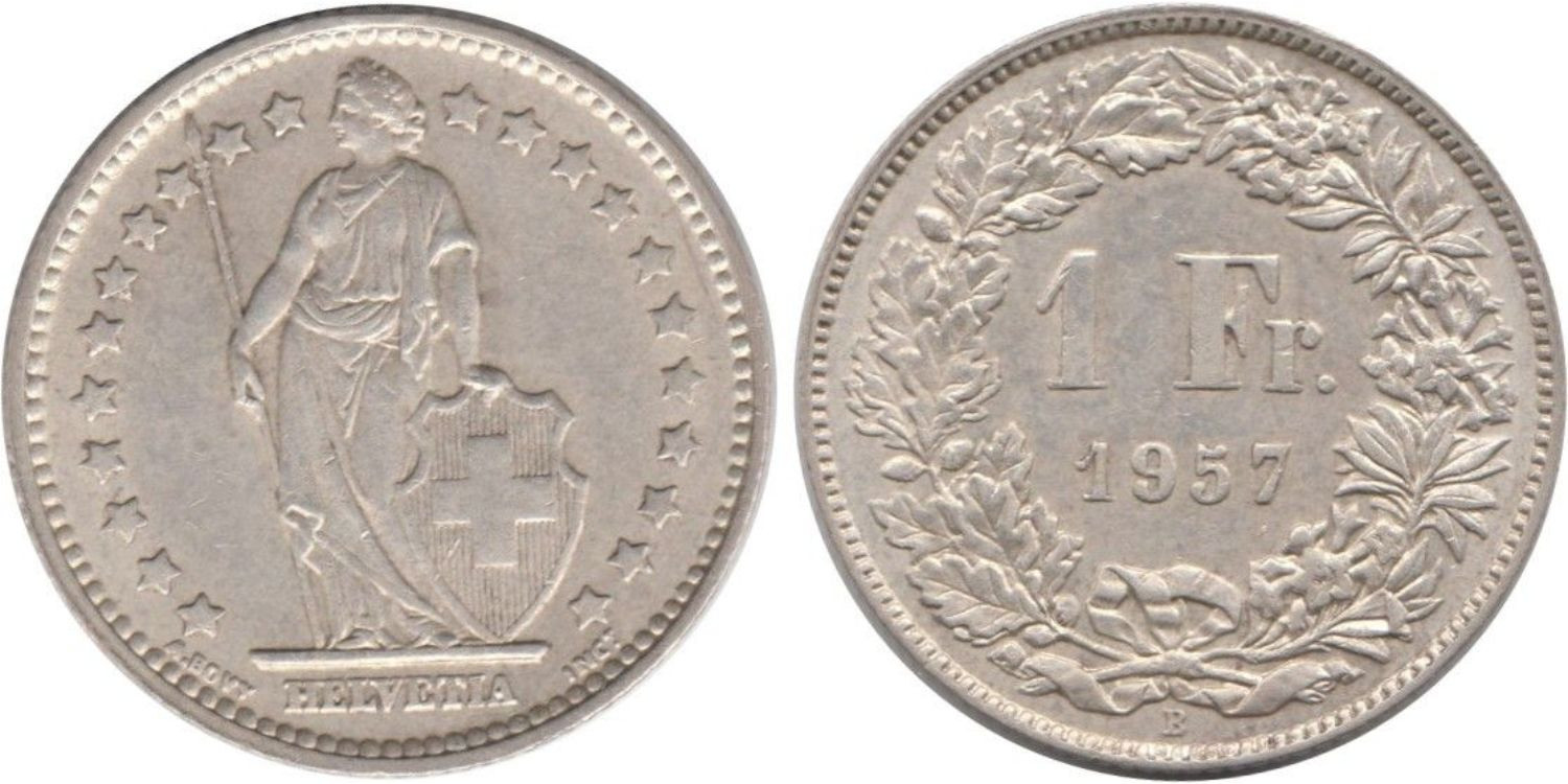 SWITZERLAND - K-024 - 1 FRANCO 1958 , SC silver