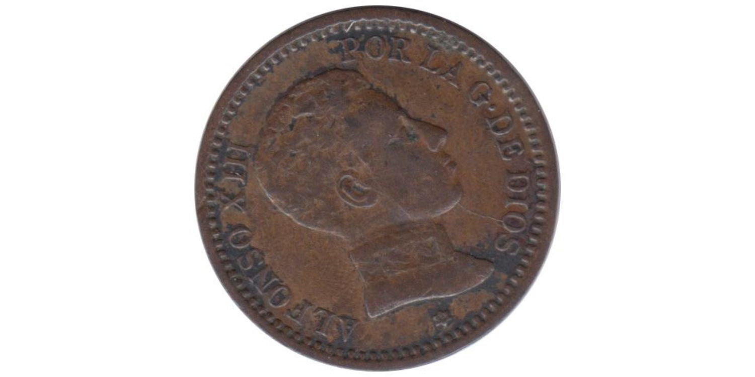 AV1 - 2 Ctm. Alfonso XIII 1904 (04) with the 0 of the star split MBC+