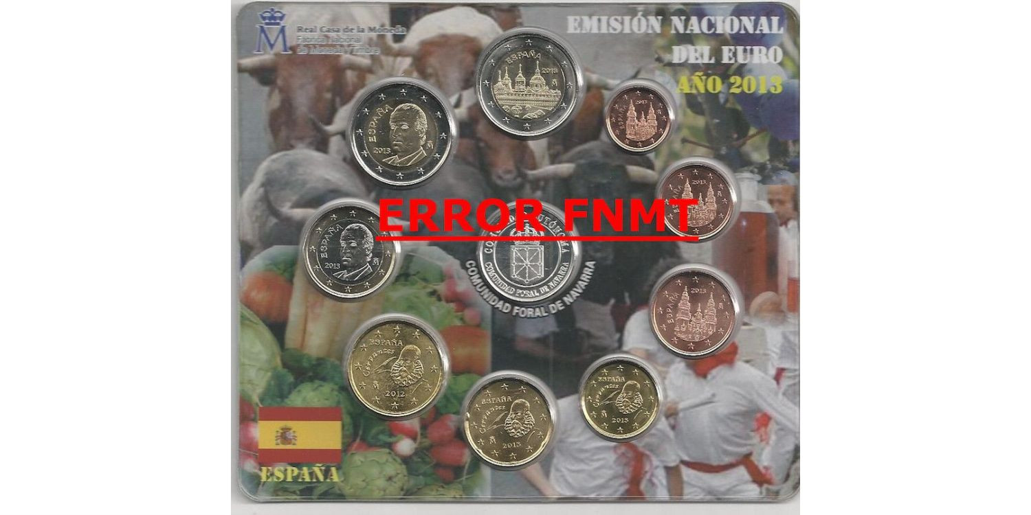 Manufacturing error of the official FNMT 2013 "Navarra" wallet. The set includes by mistake a 50 ctm coin from 2012 instead of the corresponding 2013 coin