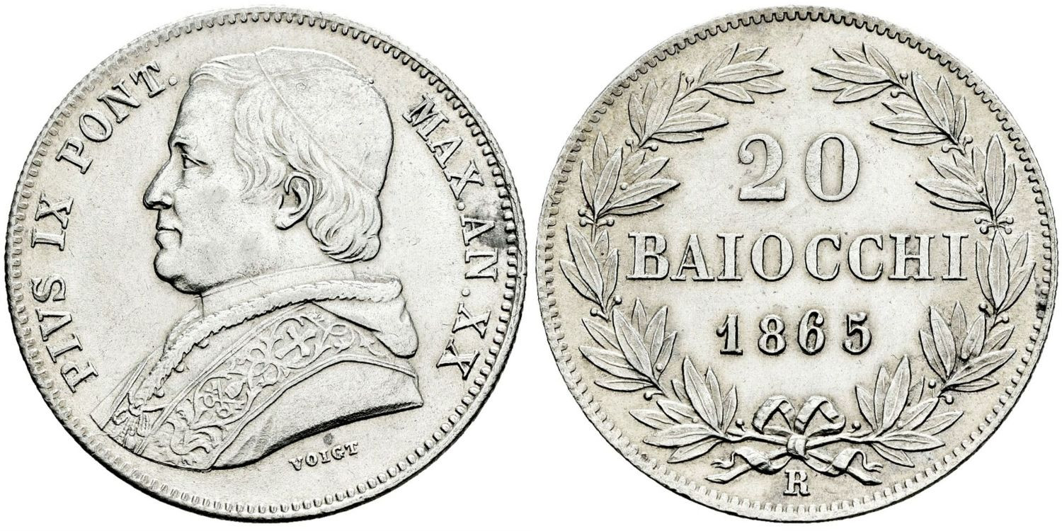 VATICAN - K-1360a- 20 Baiocchi 1865 XX r. EBC