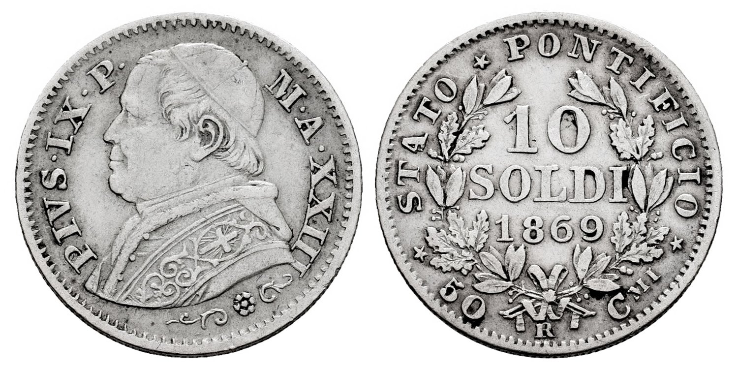 VATICAN - K-1386 - 10 SOLDI 1869-R - MBC+