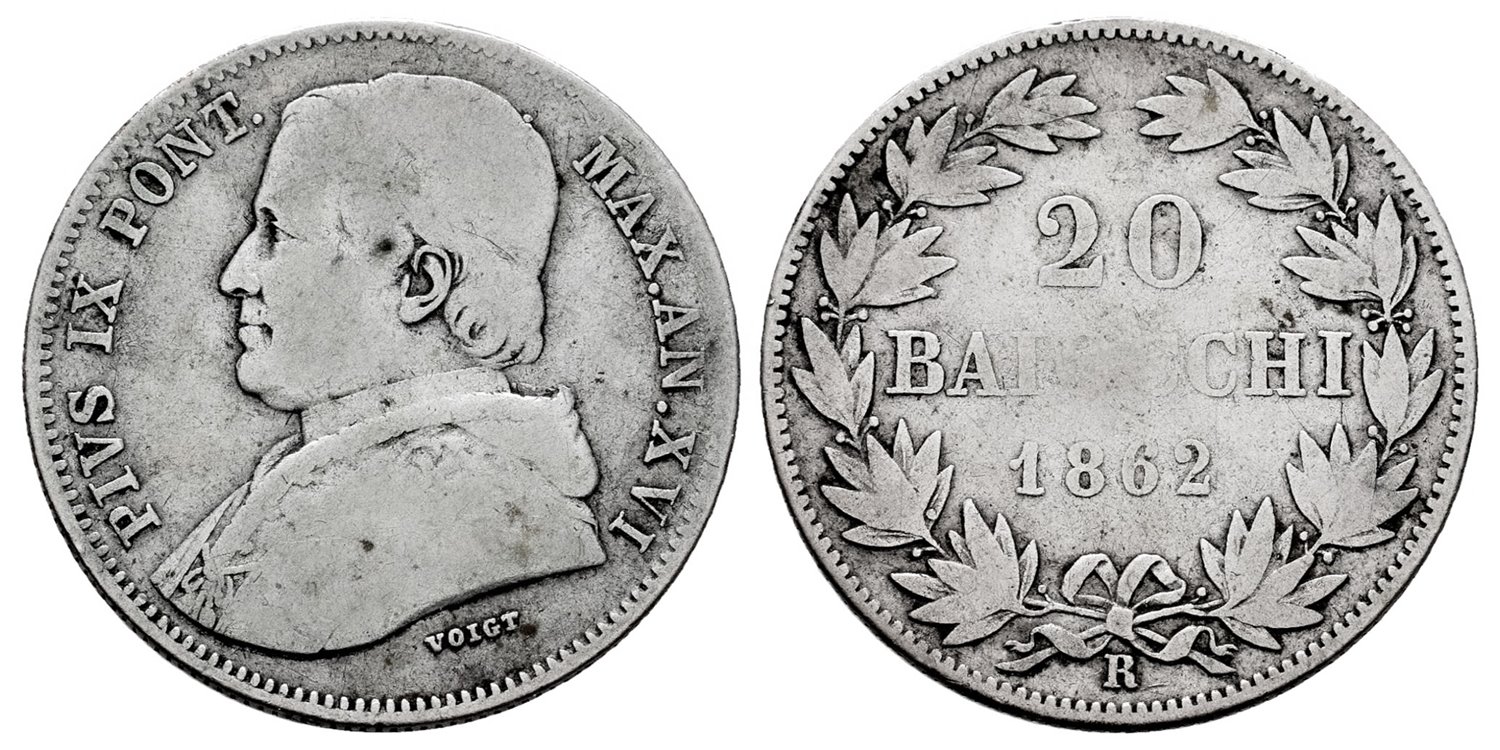 VATICAN - K-1360 - 20 SOLDI 1862-R - BC