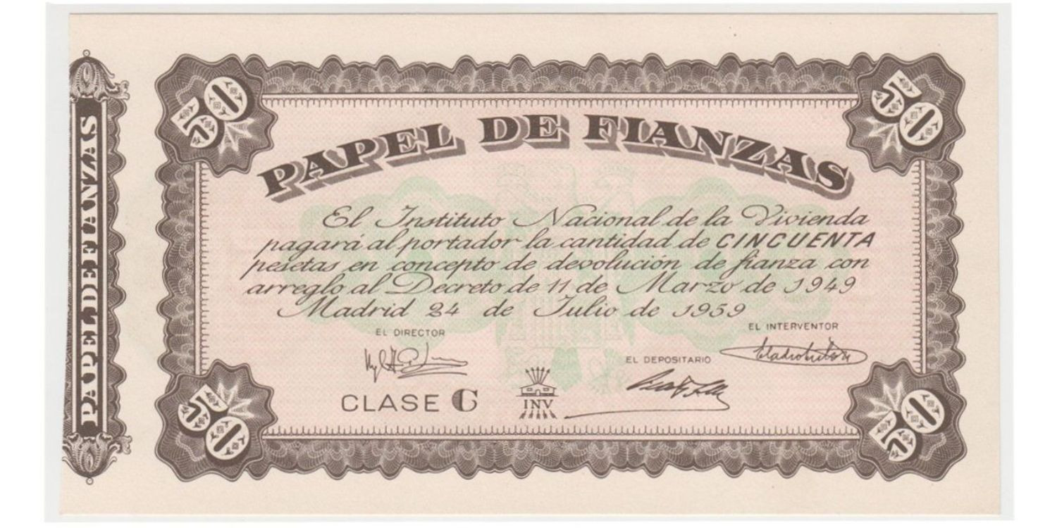 BONDING PAPER 50 PESETAS NATIONAL HOUSING INSTITUTE