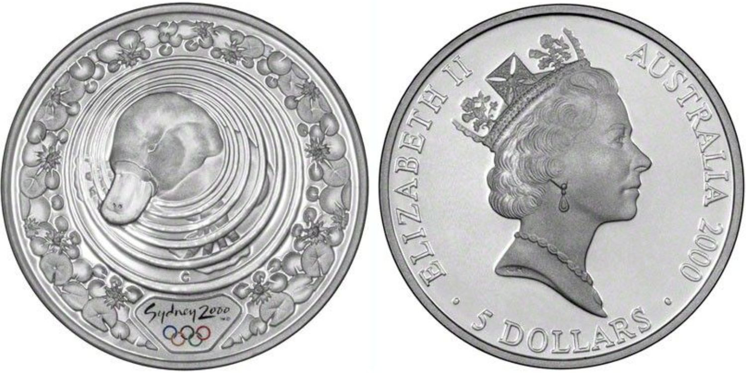 Australia. Elizabeth II. 5 dollars. 2000. (Km#816). Ag. 31,64 g. Law .999 Sidney Olympic Games 2000. Platypus