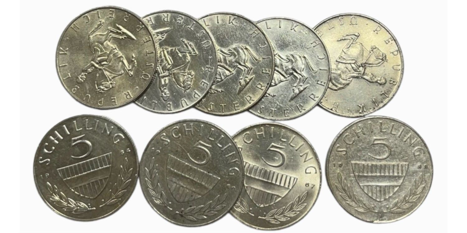 AUSTRIA - K-2889 - 5 SCHILLING. COMPLETE SERIES 1960 to 1968. MBC/EBC SILVER