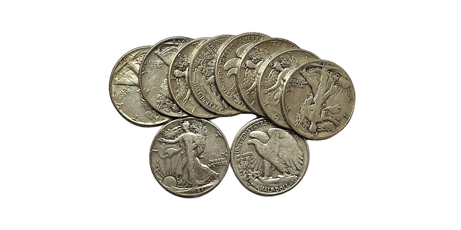 Set of 10 silver half dollar pieces. Different years or mints. BC+/MBC