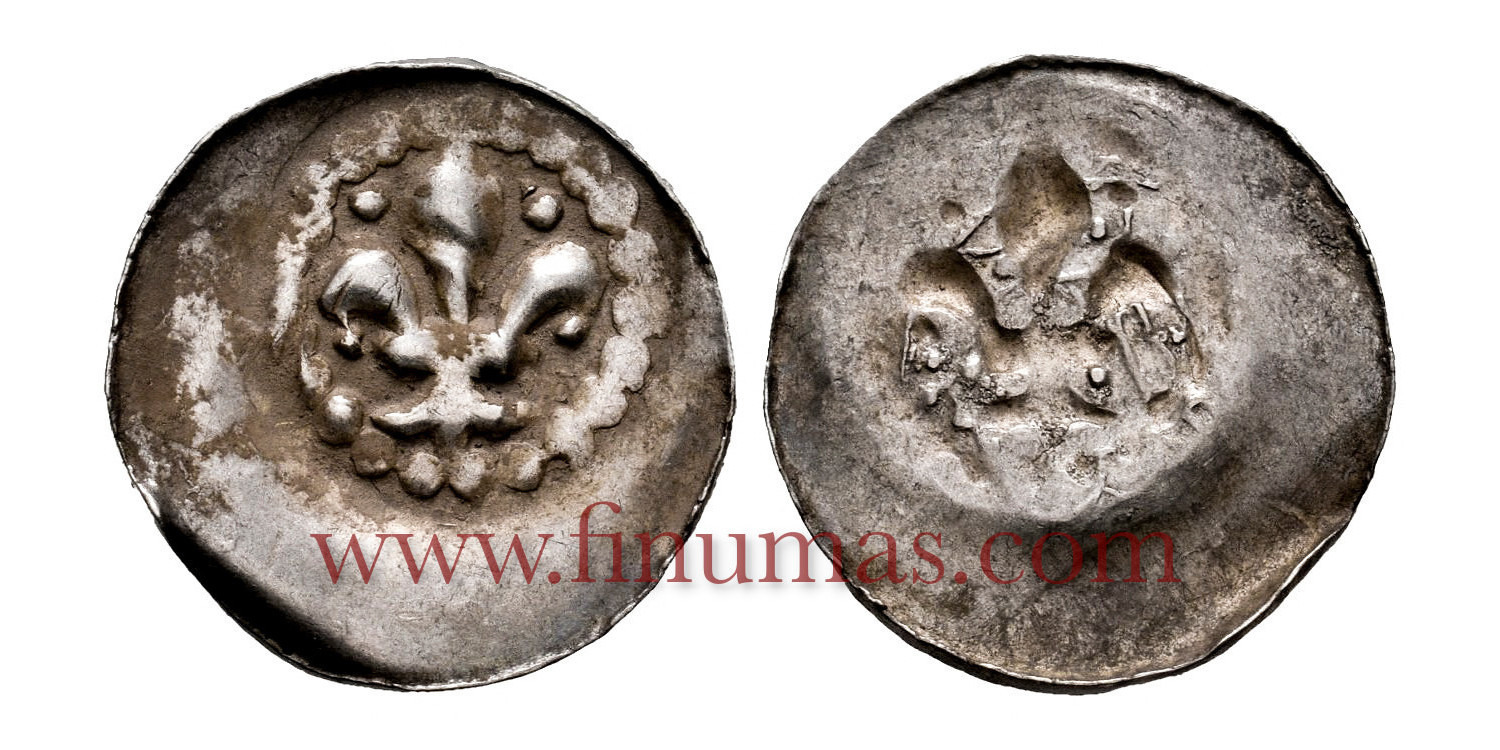 Feudal France. Strasbourg. Pfennig (Circa 1335). Obv: Lis between two pellets. Rev: Obverse uncirculated. Engel/Lehr 317. 0.5 g. ø15 mm.