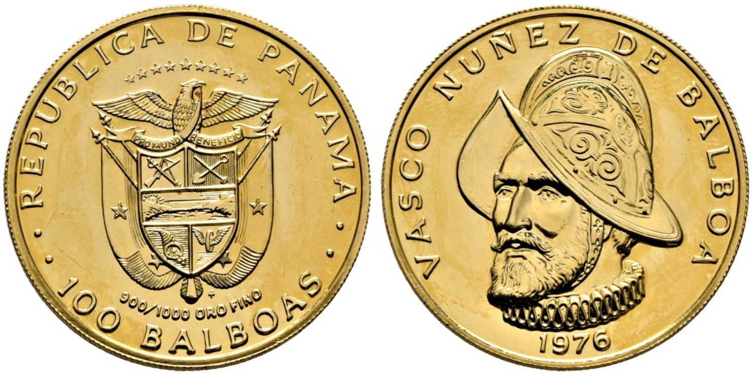 PANAMA - Km#041 - 100 BALBOAS 1976 Vasco Nuñez de Balboa. Discoverer of the Pacific. Gold (Au) 8'16gm .900mm. Original Blister