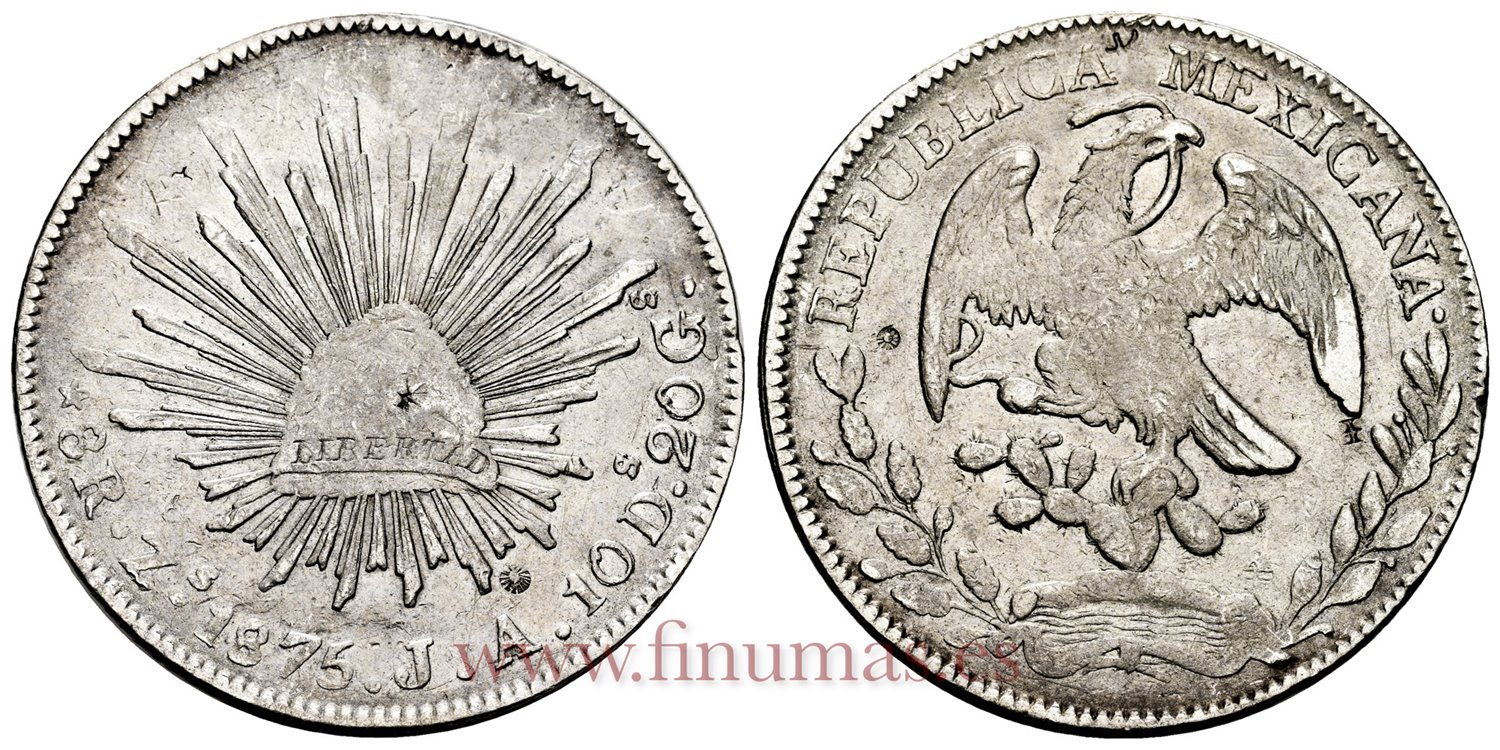 MEXICO - K377-13 - 8 REALES 1876 Zacatecas J.A.-MBC+