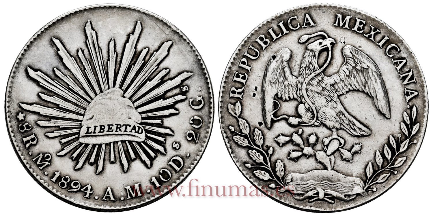 MEXICO - K377-10 - 8 REALES 1894 Mexico A.M.-MBC+