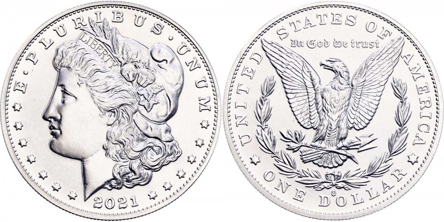 Originally designed by the Mint's chief engraver George T. Morgan (1845-1925) this iconic coin was struck between 1878 and 1904, and again in 1921. In honour of the centennial of the last year of the "Morgan Dollar", the United States Mint presents the Morgan Dollar 2021, created using modern technology and historic assets of the U.S. Mint Denver Mint