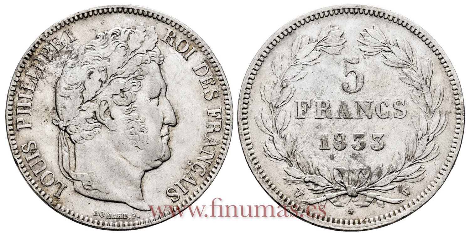 FRANCIA - K-0749 - 5 Francos 1833 W - MBC