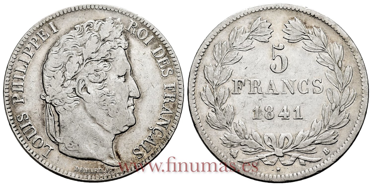 FRANCIA - K-0749 - 5 Francos 1841 B - MBC-