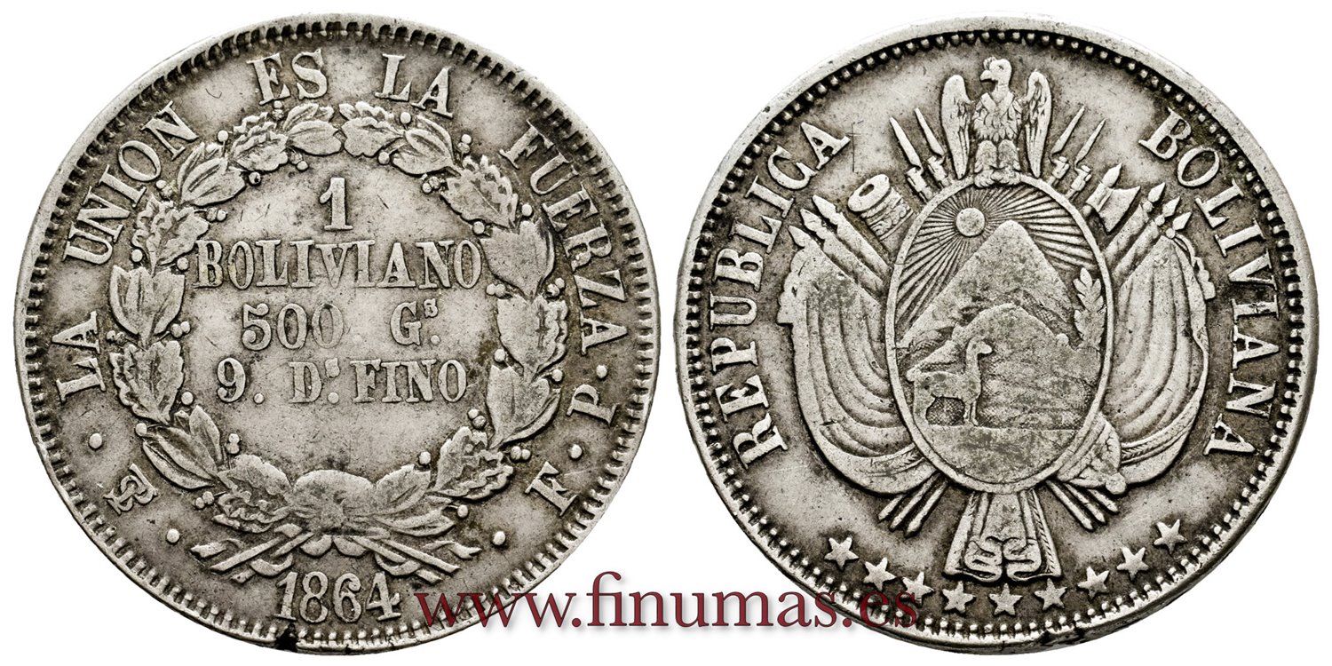 BOLIVIA - K-152-1 - 8 Soles 1864 PTS. FP - MBC+