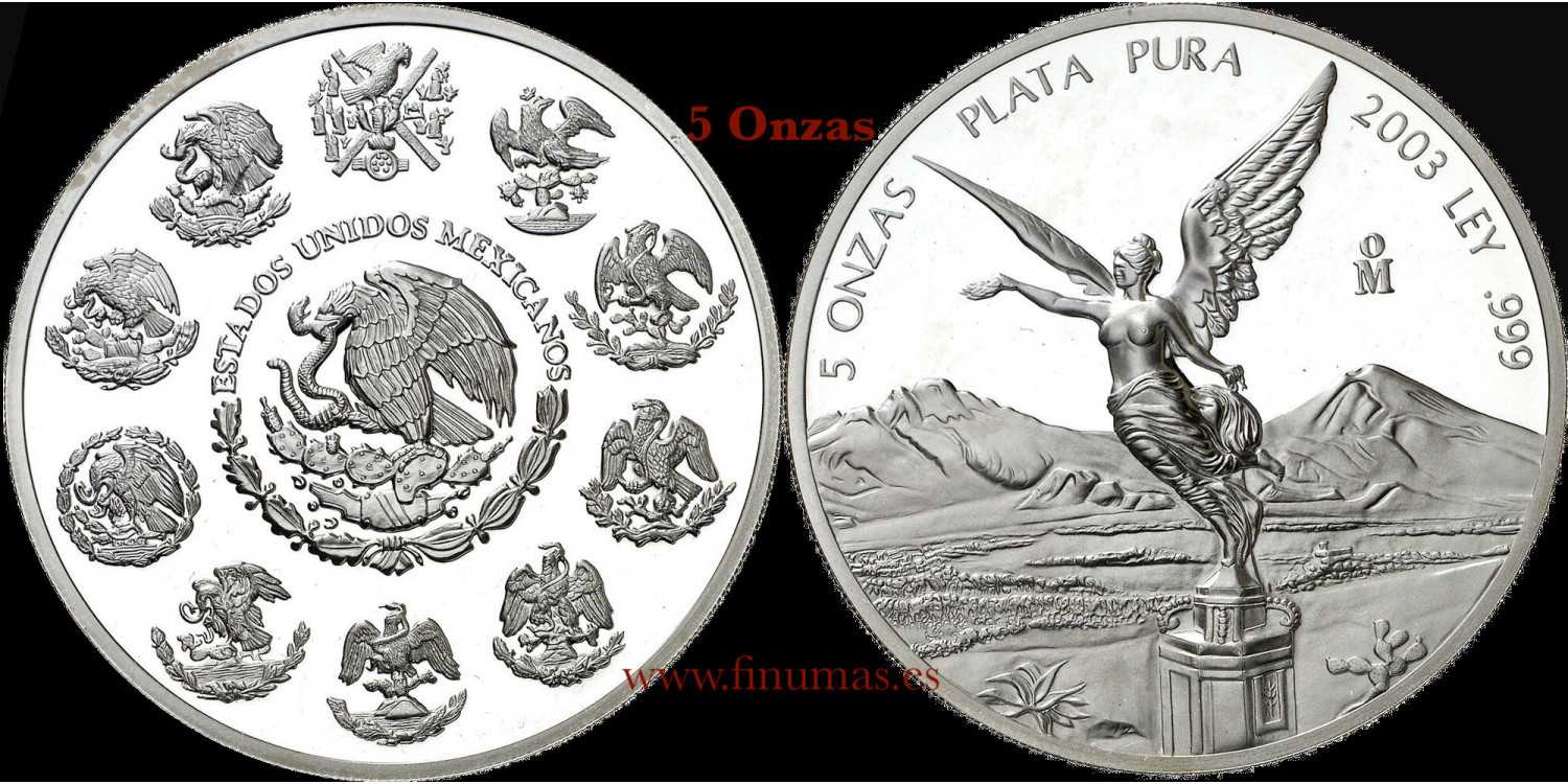 5 Ounce silver Mexico 2003 Weight: 155'5g Law: .999mm Diameter: 65 mm
