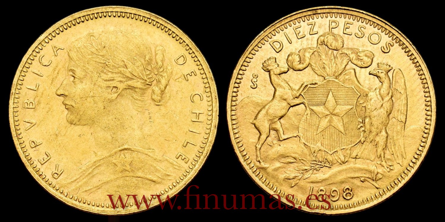10 Pesos 1898-So. Oro (Au) 5,99 gm. Fr-52; KM-157