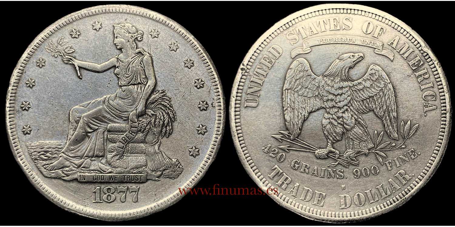 1 Trade Dollar 1877-S (SAN FRANCISCO) Silver (Ag) 27,28 gr. Seated Liberty. RARE. MBC