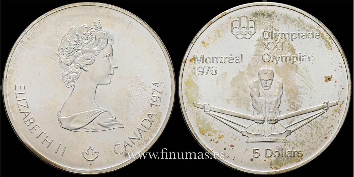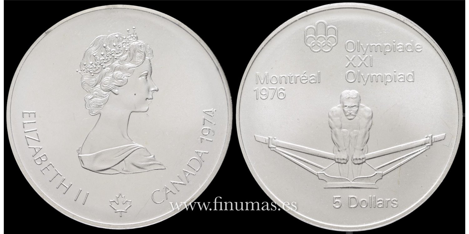 Canada5 Dolares Olimpiadas 1976, Montreal. Plata (Ag.) 24 gm .925mm ø 38 mm.