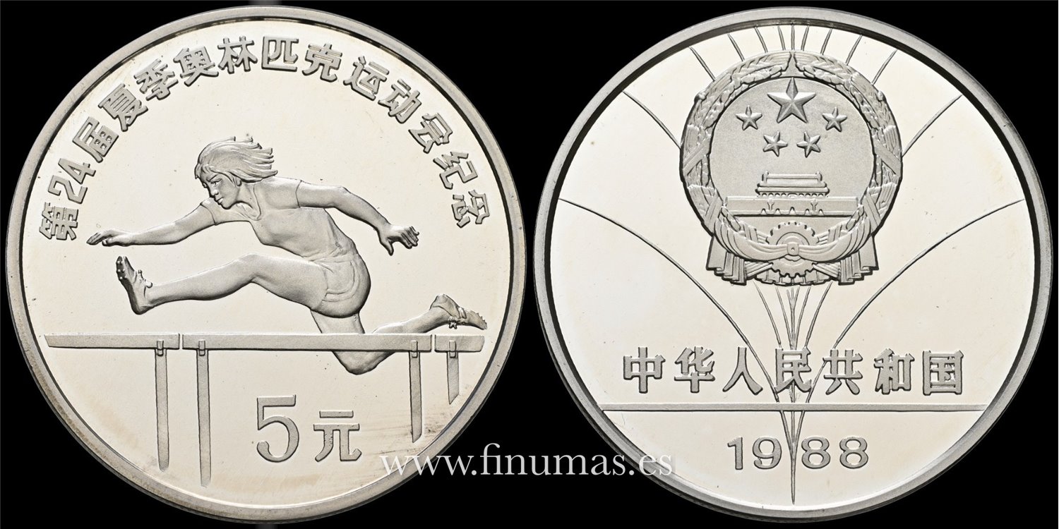CHINA 5 Yuan Juegos Olímpicos de Seúl 1988 Plata(Ag.) 30,02g ø39mm. Proof
