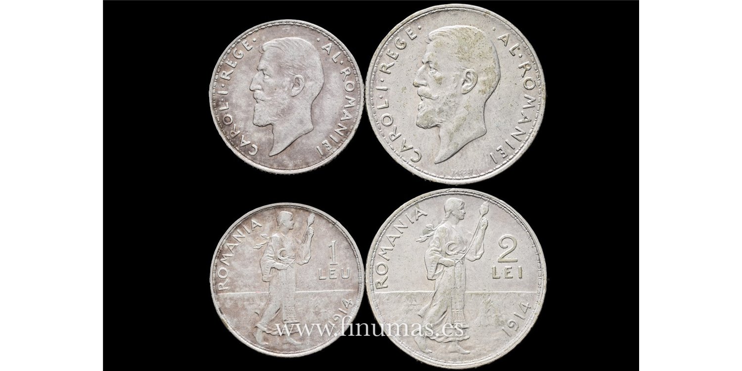 RUMANIA - K-043 1 Leu y 2 Lei 1946. Plata - MBC 2 piezas