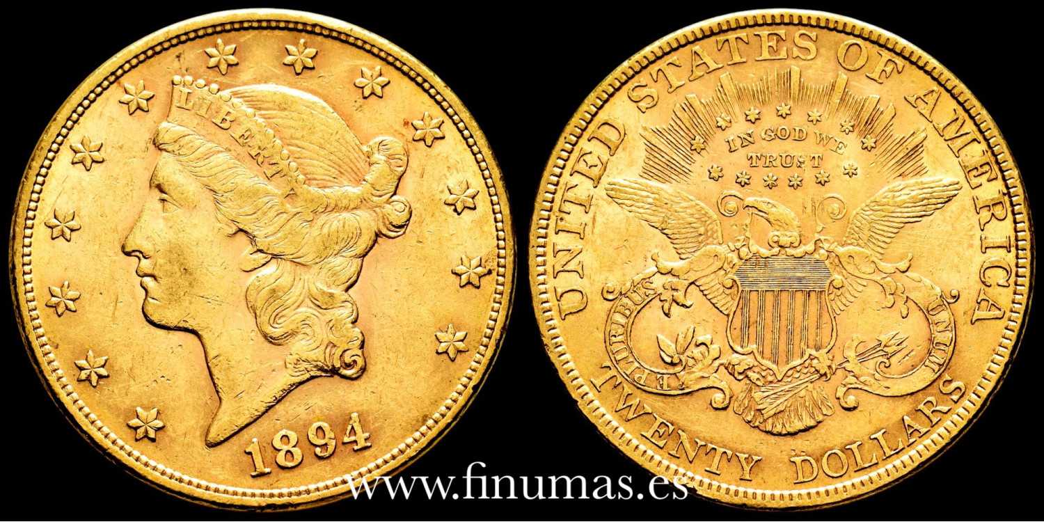 20 US dollar. 1894 PHILADELPHIA. Coronet head - Double Eagle Gold. Gold(Au) 33'43gm .900mm Ø34mm. MBC
