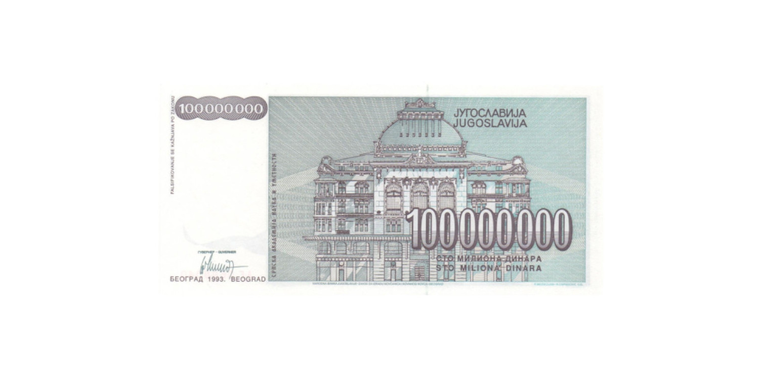 YUGOSLAVIA B-124 - 100,000,000 Dinara 1993 - SC
