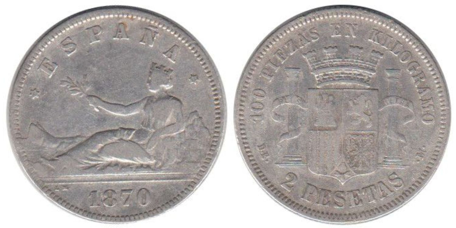 2 Pesetas 1870 (18-73) D.E.M. - Madrid - plata MBC