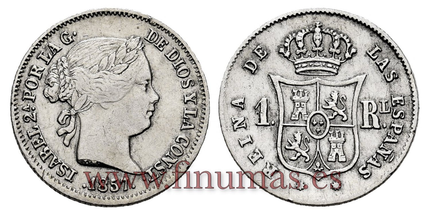Cy15927.- ISABEL II 1 Real 1857 Barcelona. PLATA -MBC+