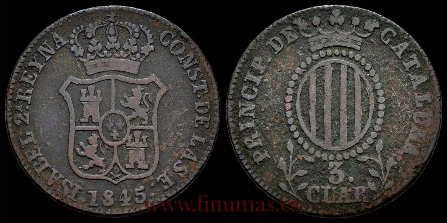 Cy15767C.-ISABEL II - 3 Cuartos 1845 Cataluña - BC. Variante