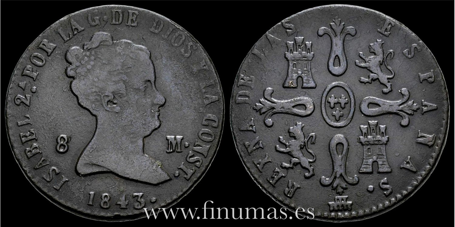 Cy15825.- ISABEL II - 8 Maravedis 1843 Segovia - MBC