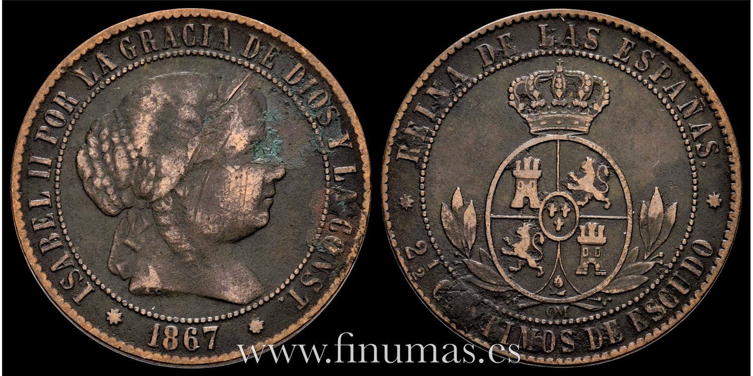 Cy15796.2.- ISABEL II - 2 1/2 Centimo de escudo 1867 Sevilla OM- BC