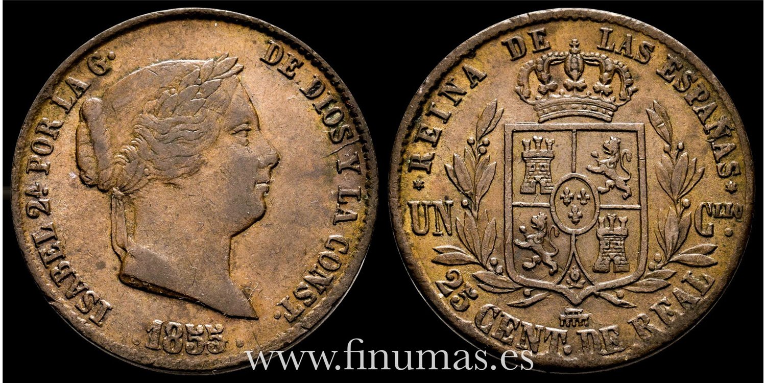 Cy15772.- ISABEL II - 25 Centimo de real 1855 Segovia - MBC