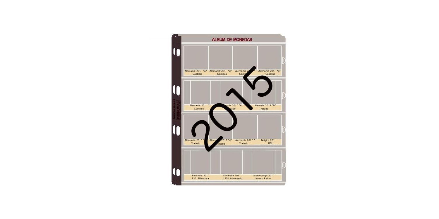 Juego de 2 hojas diseñadas para contener todas las monedas de 2 € conmemorativas 2015 emitidas por los distintos países de la zona Euro
