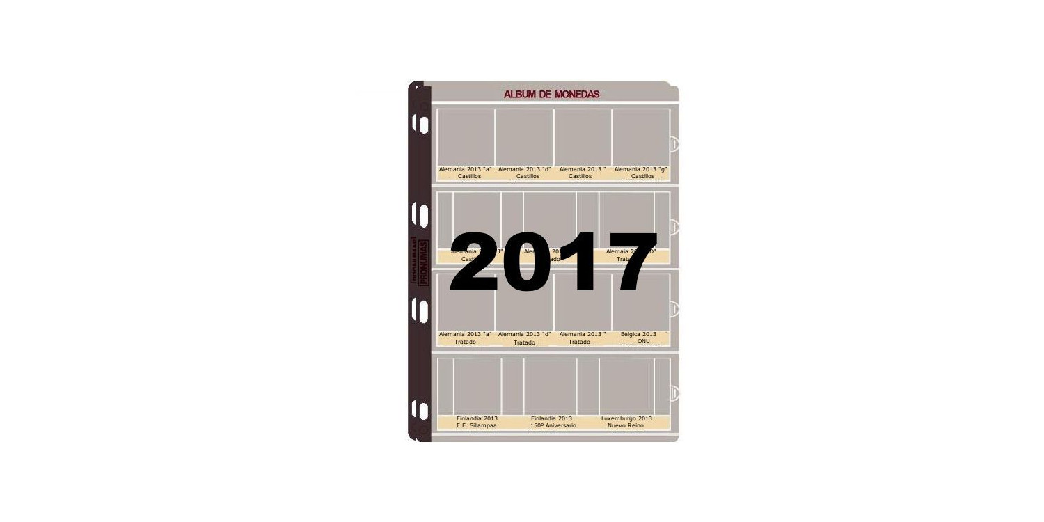 Juego de 2 hojas diseñadas para contener todas las monedas de 2 € conmemorativas 2017 emitidas por los distintos países de la zona Euro