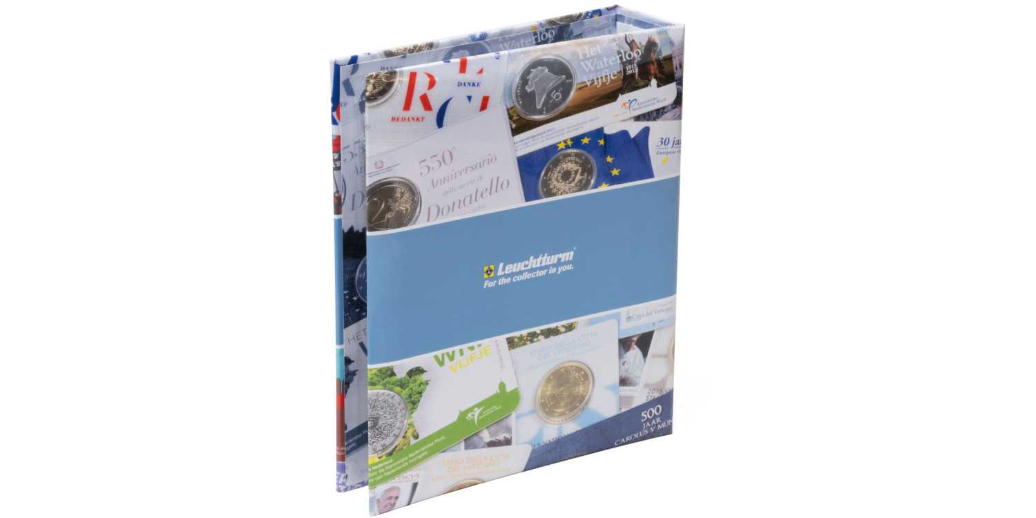las coincards son muy populares entre los aficionados a la numismática y se consideran la forma estrella de coleccionar monedas. Pero estas tarjetas de monedas también requieren una protección óptima para que su superficie no se raye ni se dañen las esquinas. Los amantes de las coincards pueden guardar sus tesoros en este magnífico álbum. Dispone de unas resistentes tapas decoradas con muchas coincards de diferentes países del euro, que despiertan la pasión por esta fascinante área de coleccionismo de valor estable. El álbum tiene capacidad para 80 coincards, que se guardan en 8 fundas transparentes. De esta forma las coincards se pueden ver por ambos lados.