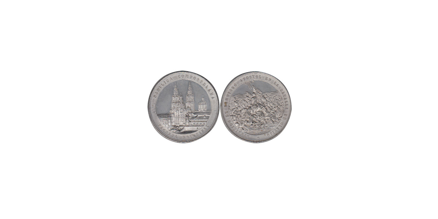 MLL074 - BASILICA COMPOSTELANA, FACHADA PRINCIPAL - APARICION DE SANTIAGO APOSTOL EN LA BATALLA DE CLAVIJO - METAL PLATEADO - 50 mm