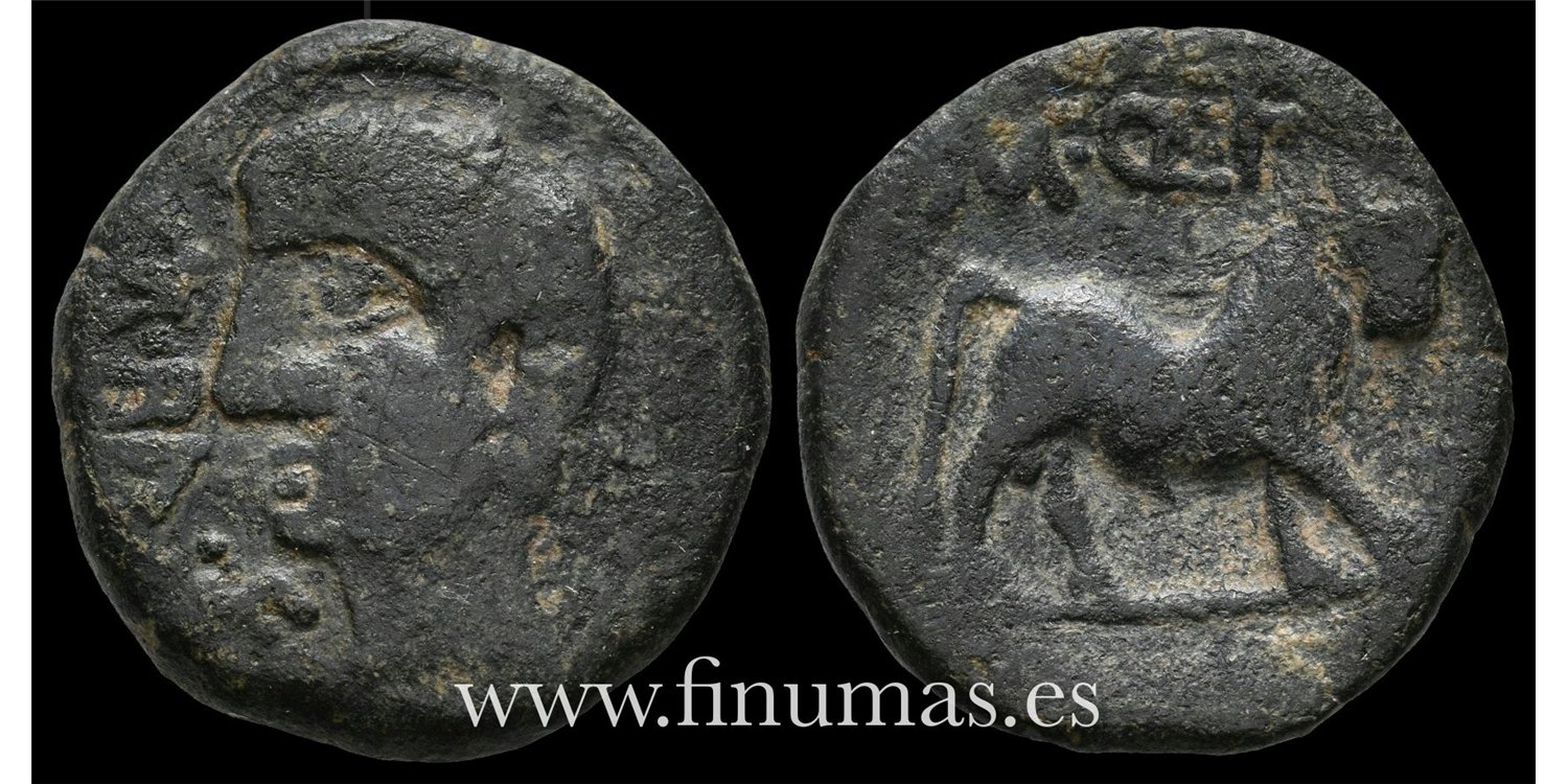 CASTULO Semis. 180 a.C. Cazlona (Jaén) Anv. Cabeza masculina a izquierda;M. BAL. F. Rev: Toro a derecha; M. Q. F. Bronce (AE) 5,98 gm.
