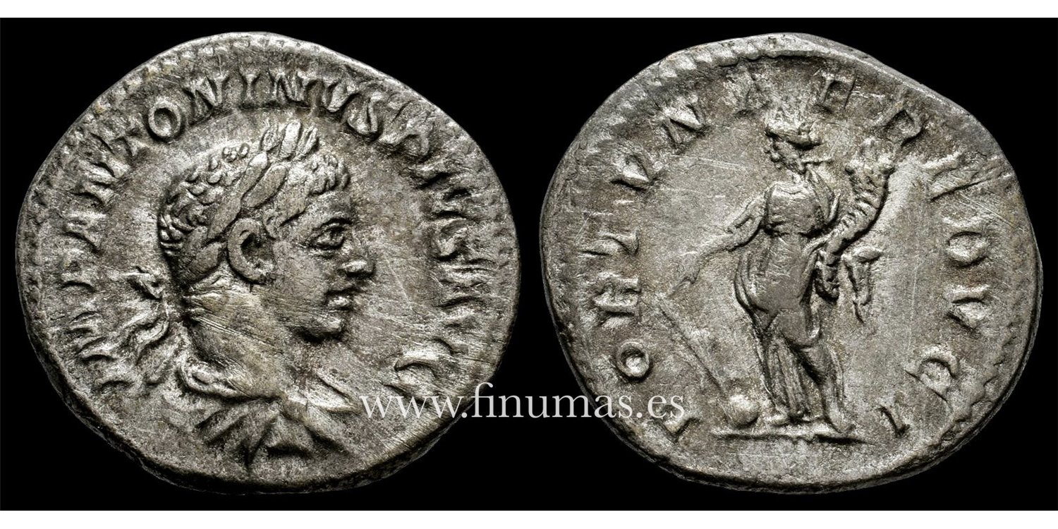 Denario Eliogábalo 218-222 d.C. Roma. Plata (Ag) 3,02gm Anv. Busto laureado y drapeado con coraza a derecha : IMP ANTONINVS PIVS AVG.. Rev.Fortuna en pie a izquierda portando timón y cornucopia: FORTVNAE REDVCI. MBC (Ric-83a)