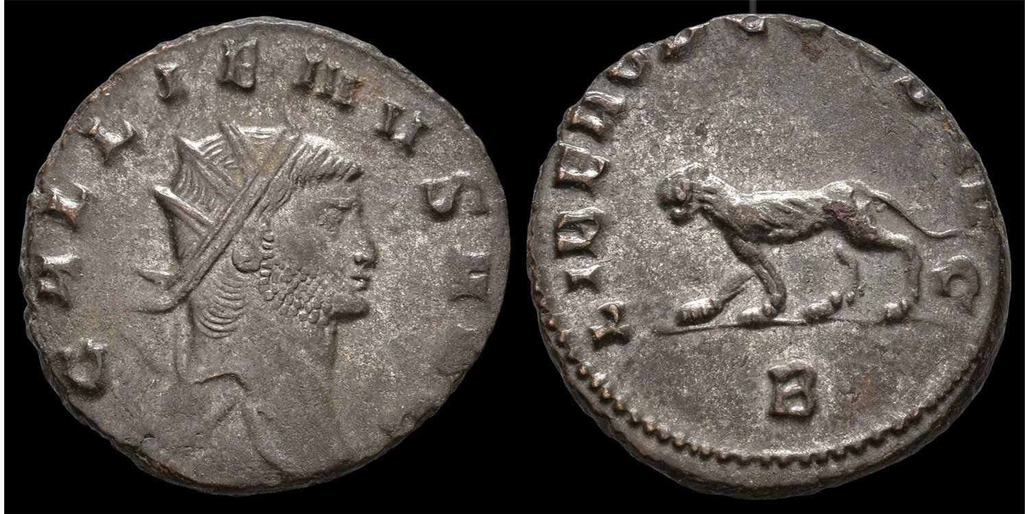 AE 3,51 gm. Anv: GALLIENVS AVG Rev: Tigre. LIBERO P CONS AVG Exergo: B RIC VI 230