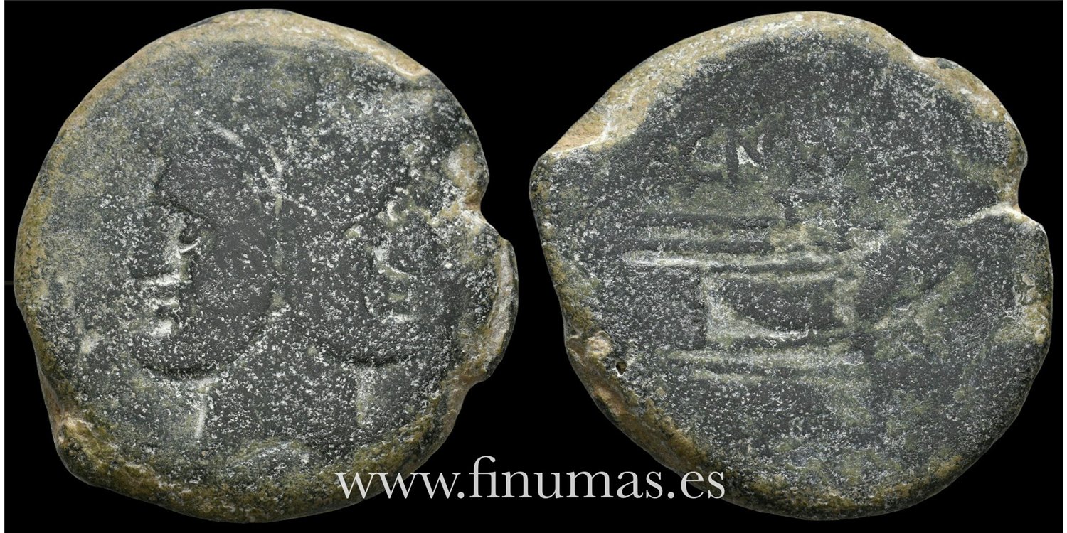 Cneo Pompeyo Magno. As. Tarraconensis 46-45a.C. Æ 27,01 gm. Cabeza laureada de Jano Rev. CN·MAG - IMP.Proa derechas