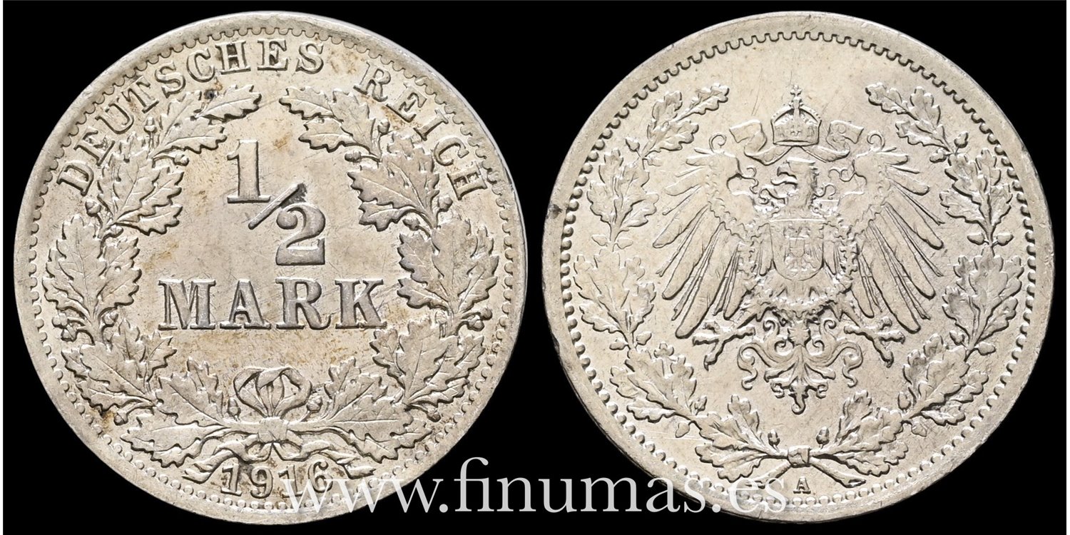 ALEMANIA IMPERIO - K-A1M-007 - 1/2 Marco1916 A. EBC - plata