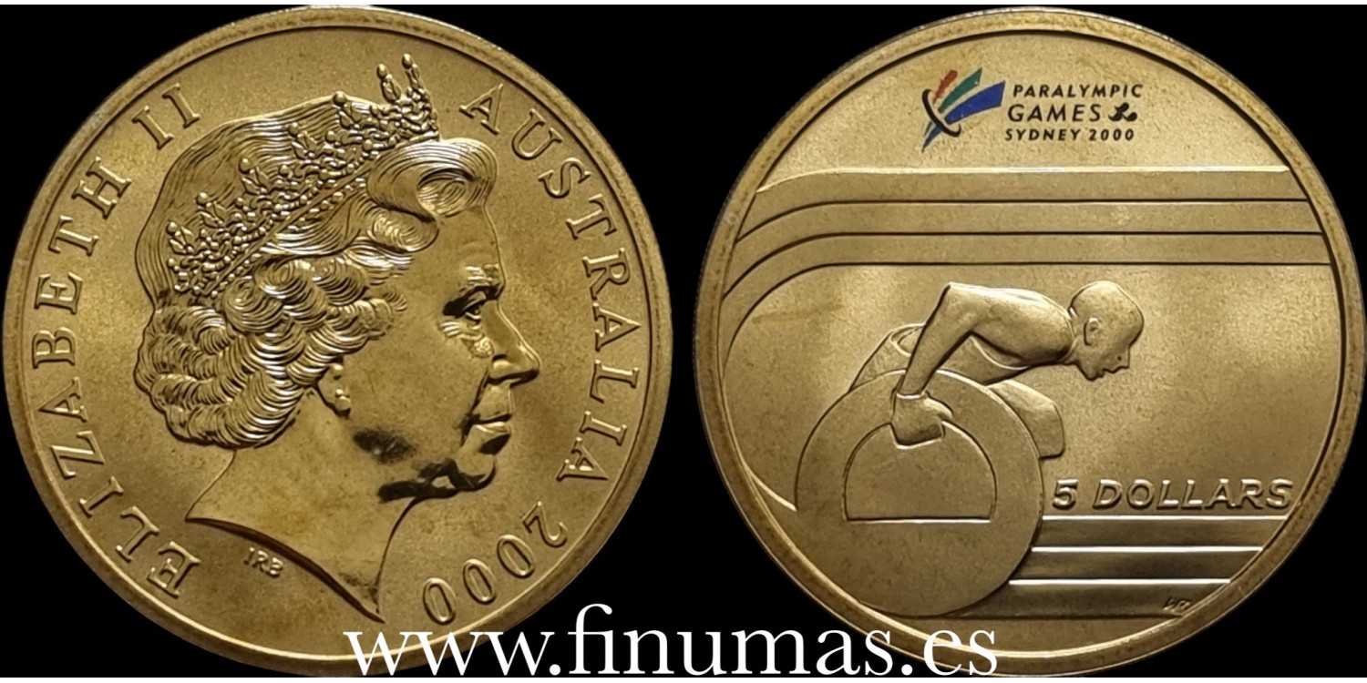 5 dólar Australia Sidney 2000 Paraolimpicos. . 20gm Aluminio Bronceado. ø39mm. Acabado PROOF.